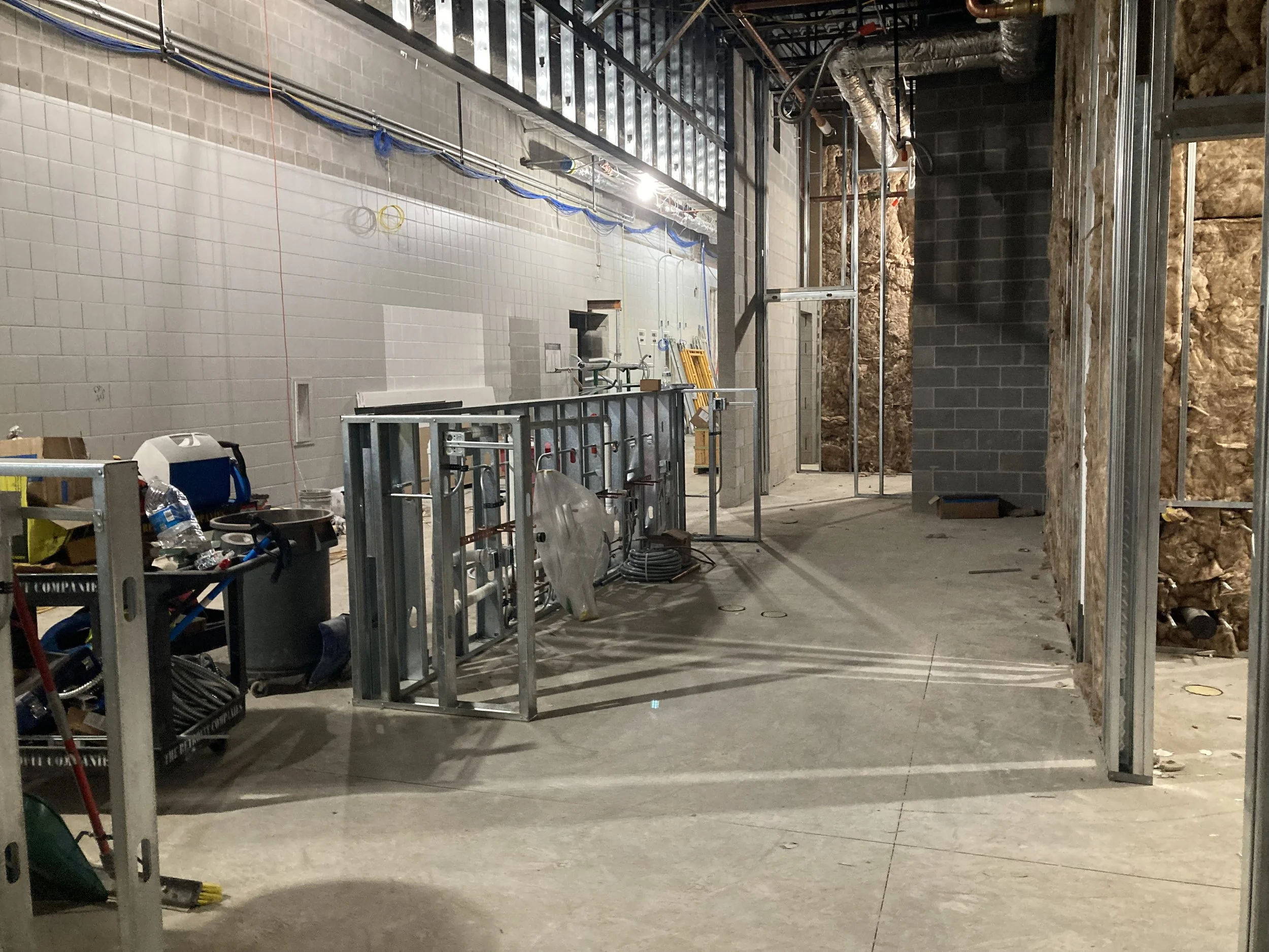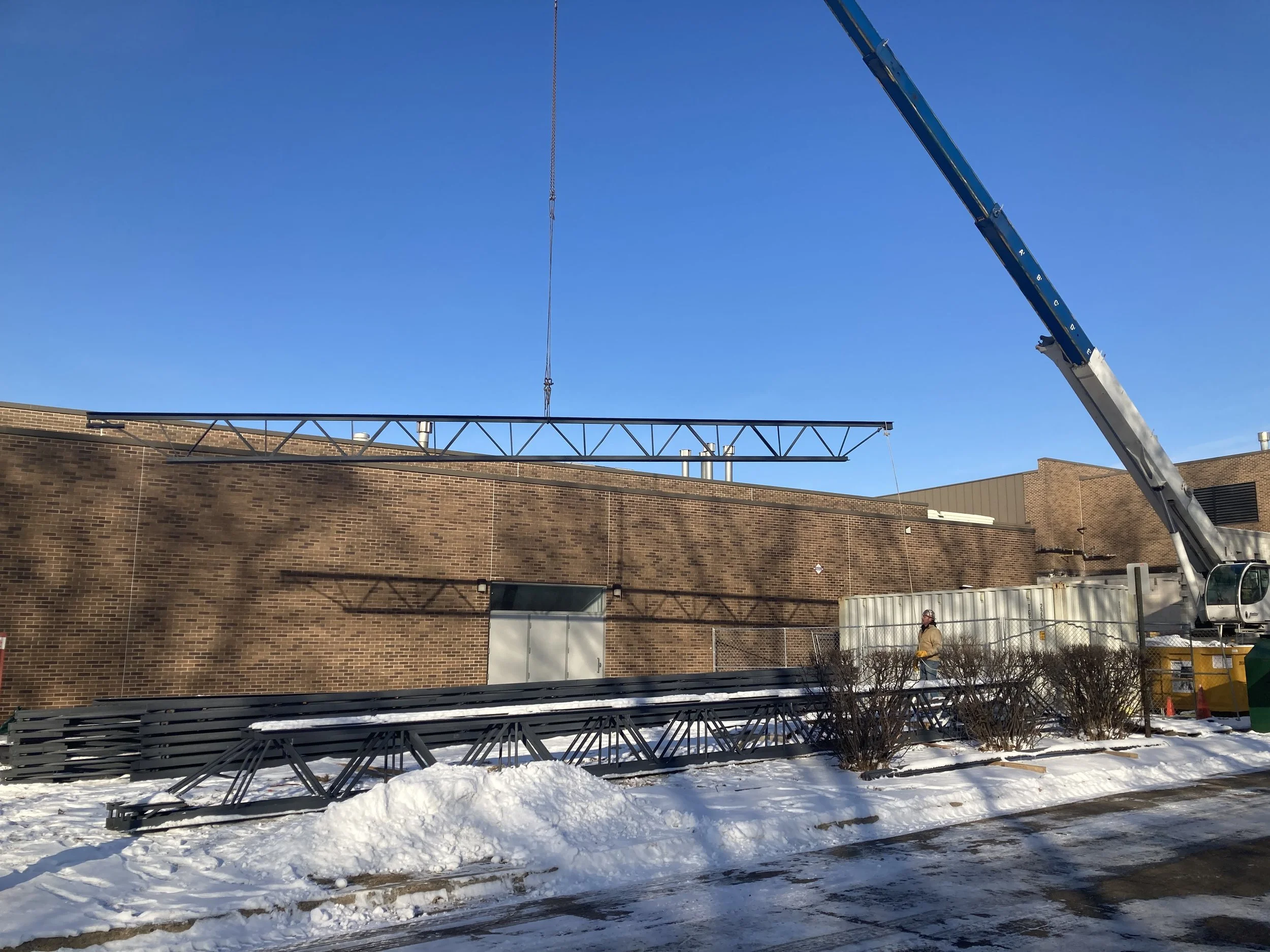 February 2025: Construction of new ice mechanicals room on east side of building begins.